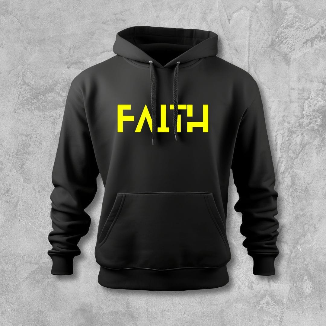 100% cotton T-shirt with the yellow “FAITH” lettering on the chest